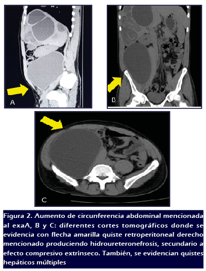 lesiones de quistes a nivel retroperitoneal derecho de 15 x 17cm de