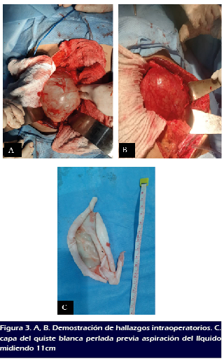 retroperitoneal derecho, y resección de este quiste, lavado de