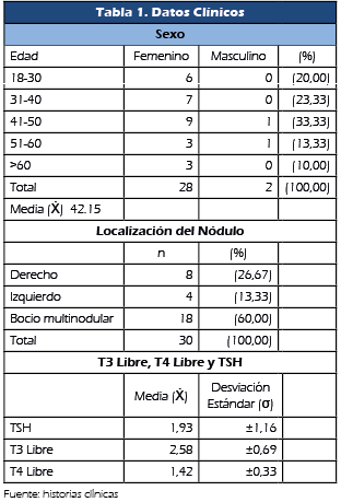 nódulos tiroideos a estudiar, que conformaron la muestra y que