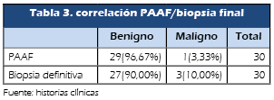 eran carcinomas. (4) Con la PAAF como procedimiento diagnóstico