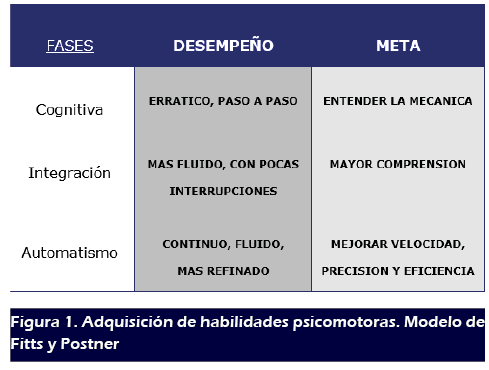 Basados en el modelo de adquisición de habilidades psicomotoras descrito por Fitts y Posner (