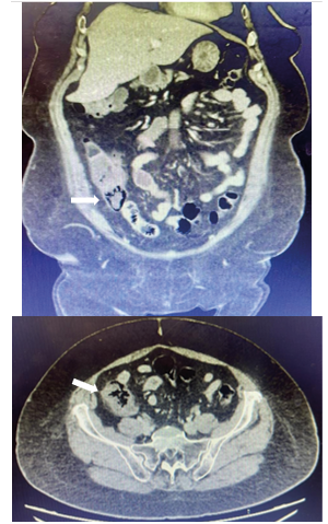 diarrea. La tomografía computarizada evidenció engrosamiento mural del ciego,