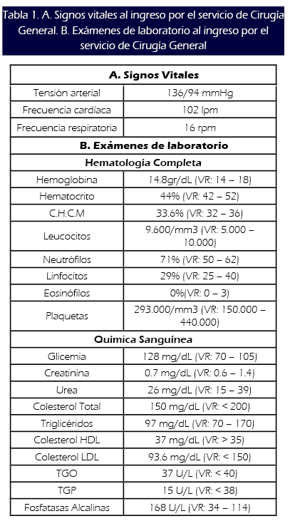 ingreso, paciente presentó los signos vitales mostrados en Tabla
