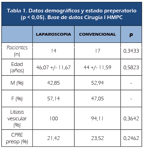 de 31 pacientes con litiasis coledociana seleccionados de manera no