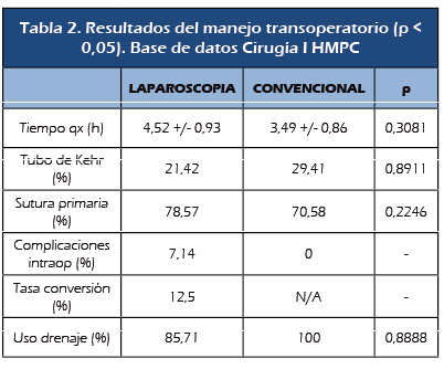 grupo laparoscópico se usó tubo de Kehr en 21% de los