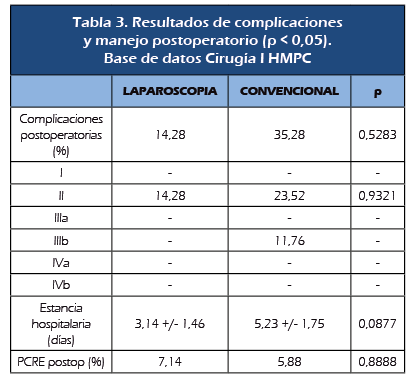frecuente. La estancia hospitalaria fue 3,14 días en el grupo