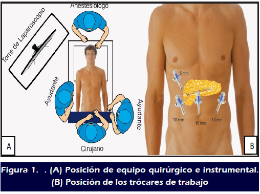 reborde costal y un último trocar de 5 mm inferior al reborde