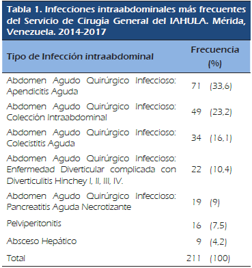 infecciosas intraabdominales que se manejan en el IAHULA. El uso