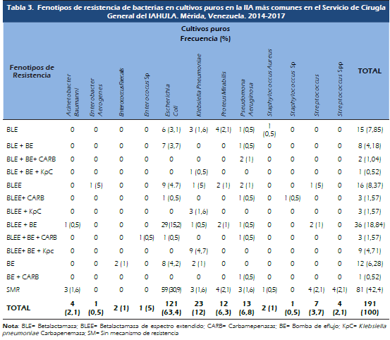intraabdominales, y fenotipificar sus perfiles de resistencia al uso de