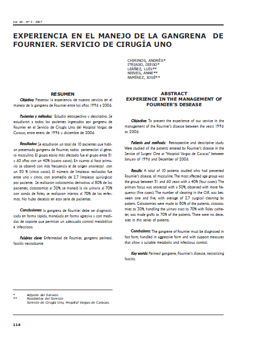Fournier en el Servicio de Cirugía Uno del Hospital Vargas de