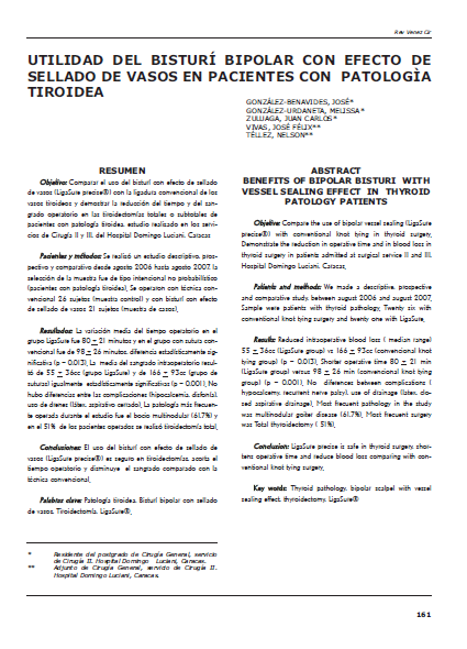 vasos (LigaSure precise®) es seguro en tiroidectomías, acorta el