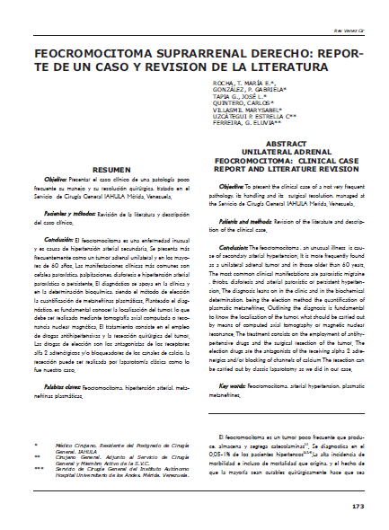 Conclusión: El feocromocitoma es una enfermedad inusual