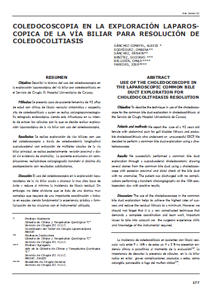 laparoscópica de la vía biliar con uso del coledocoscopio.